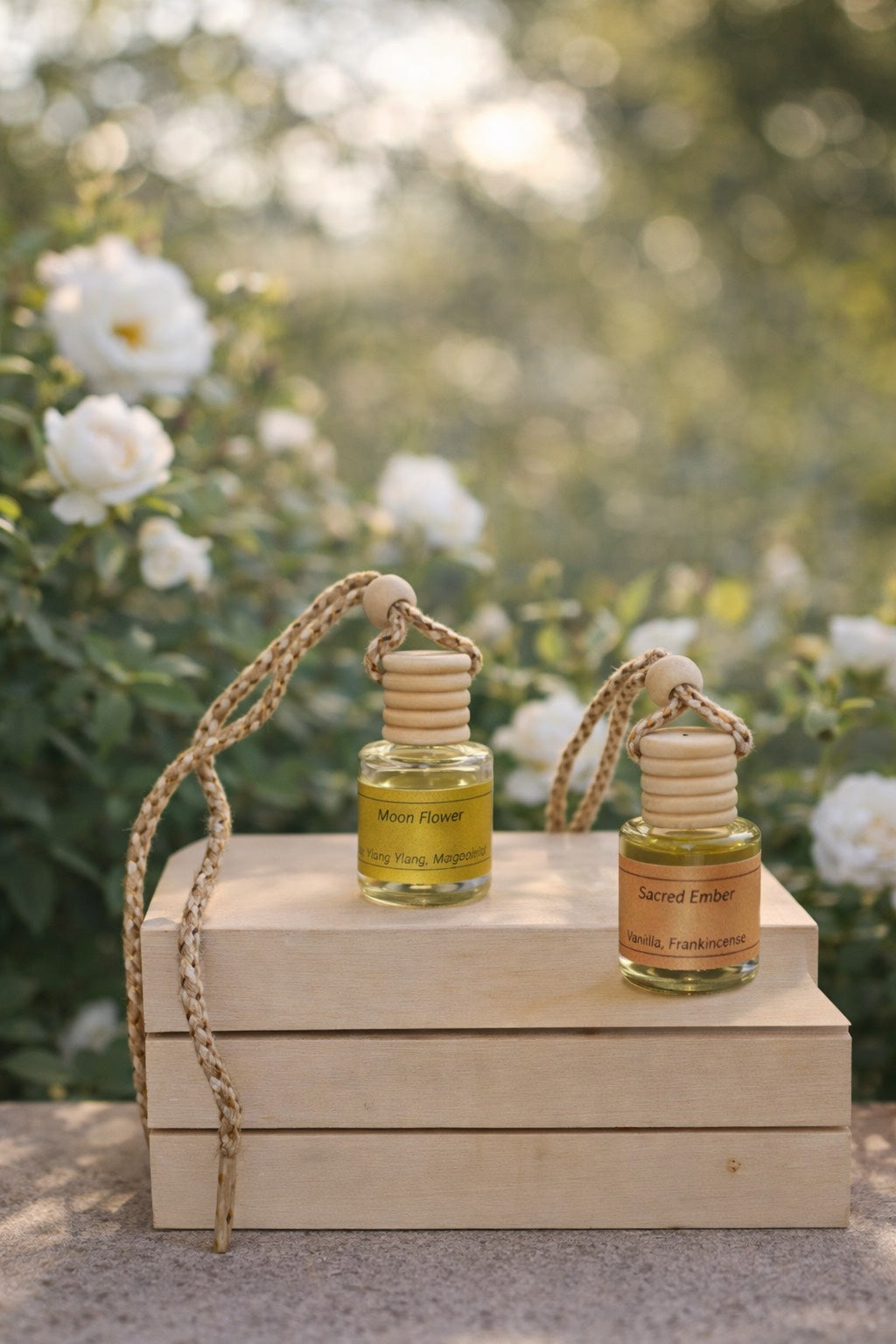 Bring calm wherever the road takes you. Our handcrafted car oil diffusers are designed to gently scent your space with soft, balanced aromas inspired by nature and everyday rituals. Each blend is thoughtfully curated using a mix of essential and fragrance oils, suspended in a lightweight carrier for a slow, long-lasting release.
